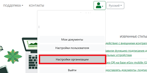 После прохождения [аутентификации] (https://sigex.kz/support/how-to/auth/) на сервисе войдите в раздел “Настройки организации”.