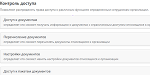 В данном подразделе можно посмотреть и распределить права доступа к различным функциям сервиса определенным сотрудникам организации.