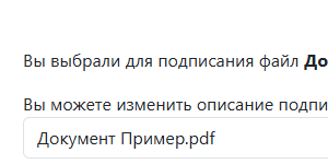 В качестве описания автоматически заносится имя подписываемого файла, но описание всегда можно изменить.