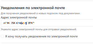 В данном подразделе можно включить уведомления о новых подписаниях под документами и указать адрес электронной почты на который эти уведомления будут приходить.